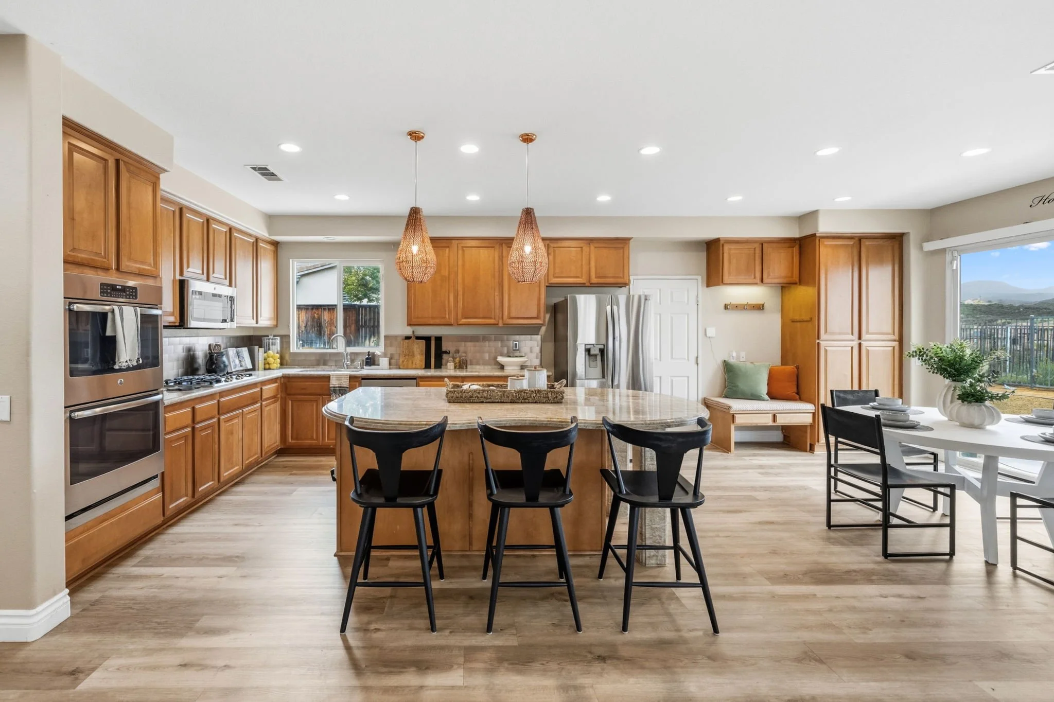 $750,000Welcome to this spacious and highly versatile 4-bedroom, 3 full bathroom home in Murrieta offering no HOA, low taxes, stunning views, and no rear neighbors - a rare combination that blends flexibility, functionality, and lifestyle. This unique property offers an incredible opportunity for multi-generational living or income potential, with the front portion of the home thoughtfully designed to be sectioned off for guests, extended family, college-aged kids, or traveling nurses. This space features one bedroom, one full bathroom, washer/dryer hookups, a kitchenette, living room, and dining area, creating a comfortable independent living option - while still maintaining ample space throughout the rest of the home. Prefer a traditional layout? The home easily functions as a standard single-family residence - the choice is yours. Inside, you’ll find an inviting open-concept kitchen and family room filled with natural light, a cozy fireplace, and spacious living areas ideal for everyday living and entertaining. Upstairs offers three additional bedrooms including a spacious primary suite with private balcony, large walk-in closet, soaking tub, and serene views, plus a versatile loft space perfect for a home office, media room, or play area. Thoughtful upgrades include luxury vinyl plank flooring downstairs, quartzite kitchen countertops, custom lighting, and an upgraded guest bathroom, all contributing to a modern yet warm aesthetic. Large windows throughout provide abundant natural light and enhance the home’s airy feel. Outside, enjoy a charming front porch, an extended driveway with parking for up to 8 vehicles total, and privacy with no rear neighbors - a rare find. Conveniently located in the heart of Murrieta, just minutes from shopping, golf courses, parks, healthcare facilities, and easy freeway access, this home offers both comfort and convenience in one of Southern California’s most desirable areas. A rare opportunity with flexibility, space, and income potential - don’t miss it!